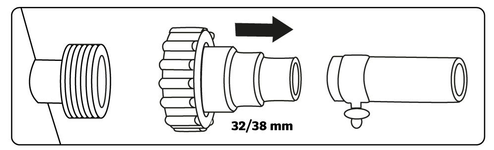 příp. 1. u bazénu máte vstup/odtok se šroubením a potřebujete připojit příšlušenství s nasazovací hadicí (32/38 mm), použijete pro napojení tento adaptér A
