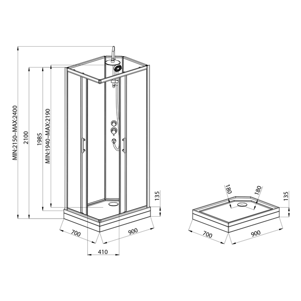 Sprchový box GRANVIK představuje jednoduché a ekonomické řešení v prostorách bez obložených stěn a vyřešené hydroizolace. Sprchový prostor je uzavřen zadními skleněnými stěnami. Součástí boxu je akrylátová samonosná vanička se sifonem. Uvnitř sprchového boxu Granvik naleznete multifunkční sprchový sloup s hlavovou sprchou s nastavitelnou výškou, ruční sprchou s jednou funkcí a pákovou baterií s přepínačem. Bezvadný chod zajišťují zdvojené horní i spodní ložiskové pojezdy. Spodní pojezdy jsou výklopné pro snadnou údržbu.