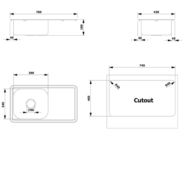 Odkládací plocha | Vlevo/Vpravo otočením dřezu | |