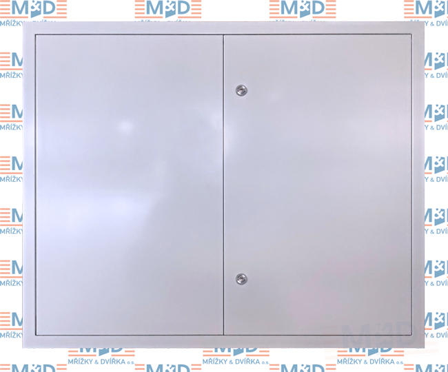 Revizní dvířka i rám jsou vyrobeny z pozinkovaného plechu o síle 1,0 mm bíle lakovaného práškovou barvou RAL 9010.