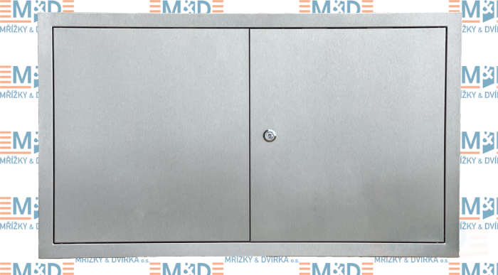 Revizní dvířka i rám jsou vyrobeny z nerezového plechu o síle 0,8 mm (materiál broušený nerezový plech, 1.4301, AISI 304, brus 240)