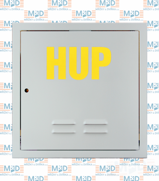 Revizní dvířka plynoměru z pozinkovaného plechu s informačním označením HUP (samolepka přiložena).