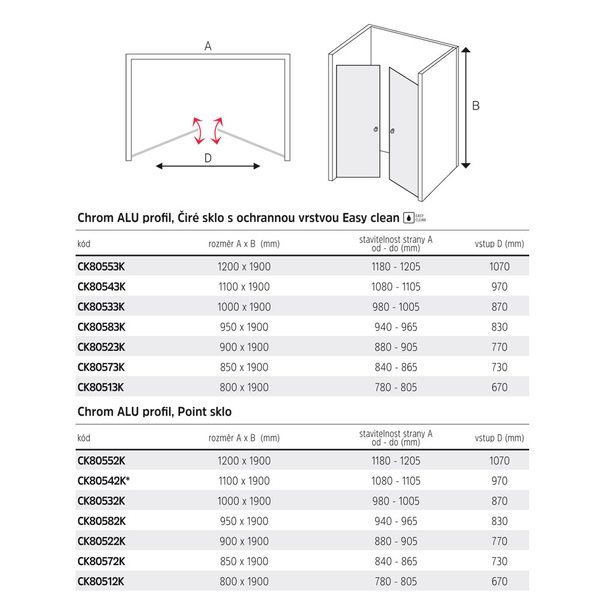 Šířka:1000 , 1200 , 800 , 850 , 900 , 950 mm